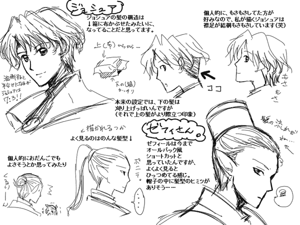 オールバック風の髪の流れはかきやすいんだか描きにくいんだか……